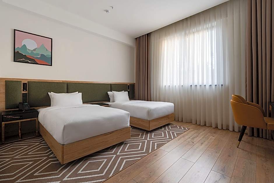 Offering free toiletries, this twin room includes a private bathroom with a shower, a hairdryer and slippers. The air-conditioned twin room offers a flat-screen TV with satellite channels, soundproof walls, a wardrobe, a safe deposit box as well as city views. The unit offers 2 beds.